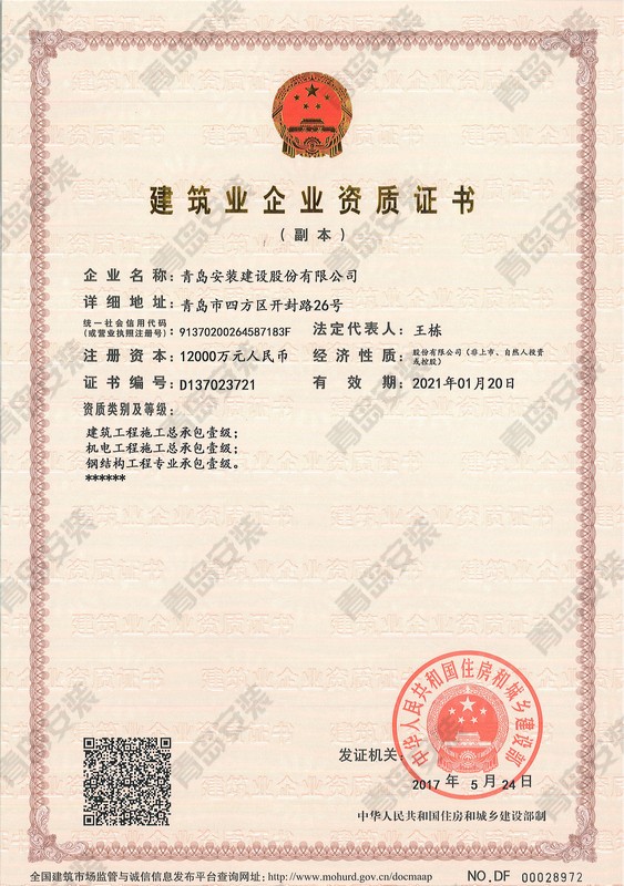 省級(jí)資質(zhì)證書(shū)
