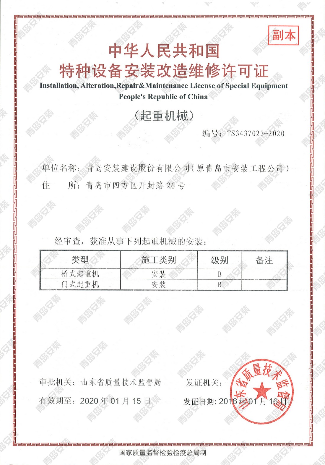 特種設(shè)備安裝改造維修許可證-起重機(jī)械
