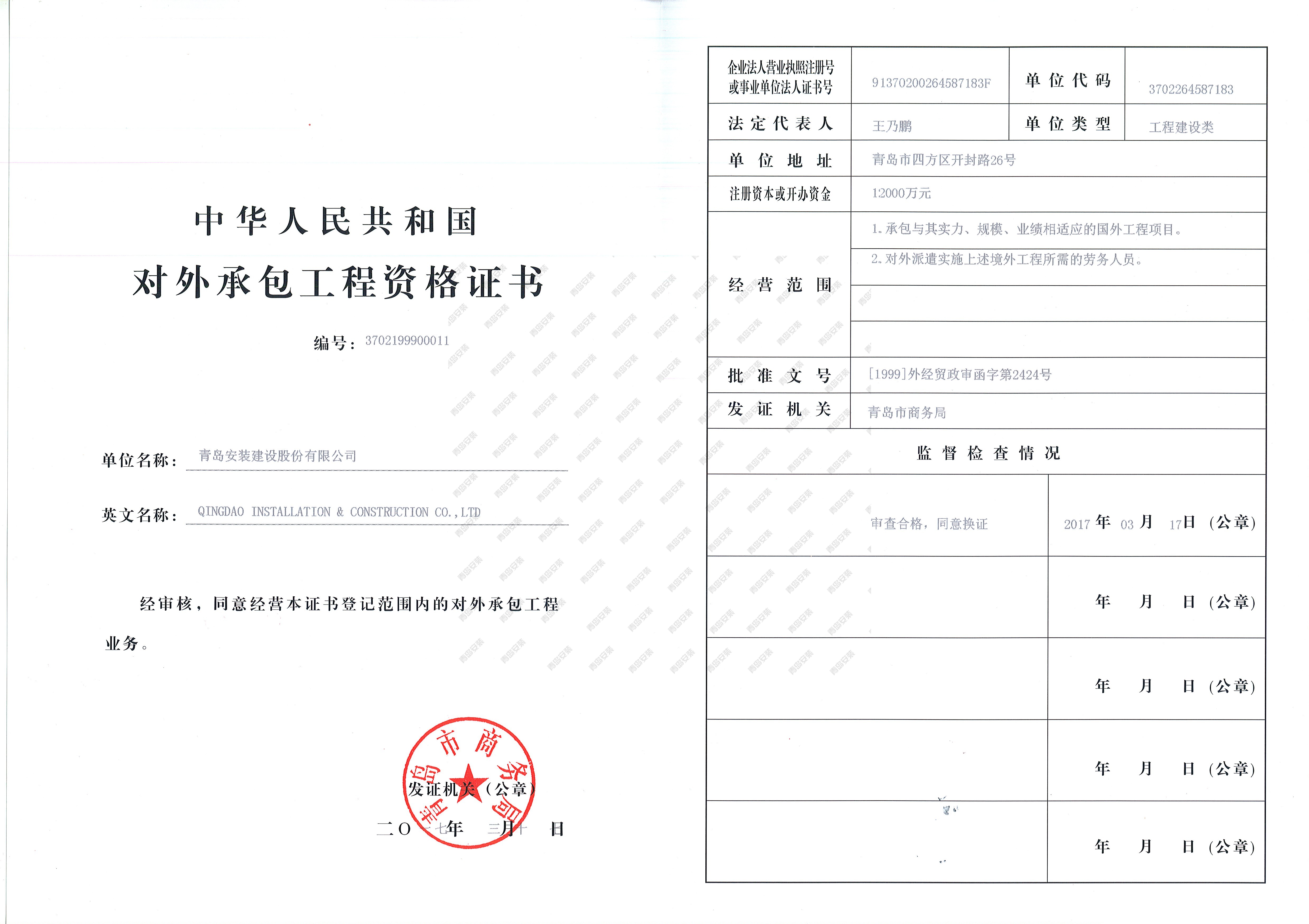 對(duì)外承包工程資格證書(shū)