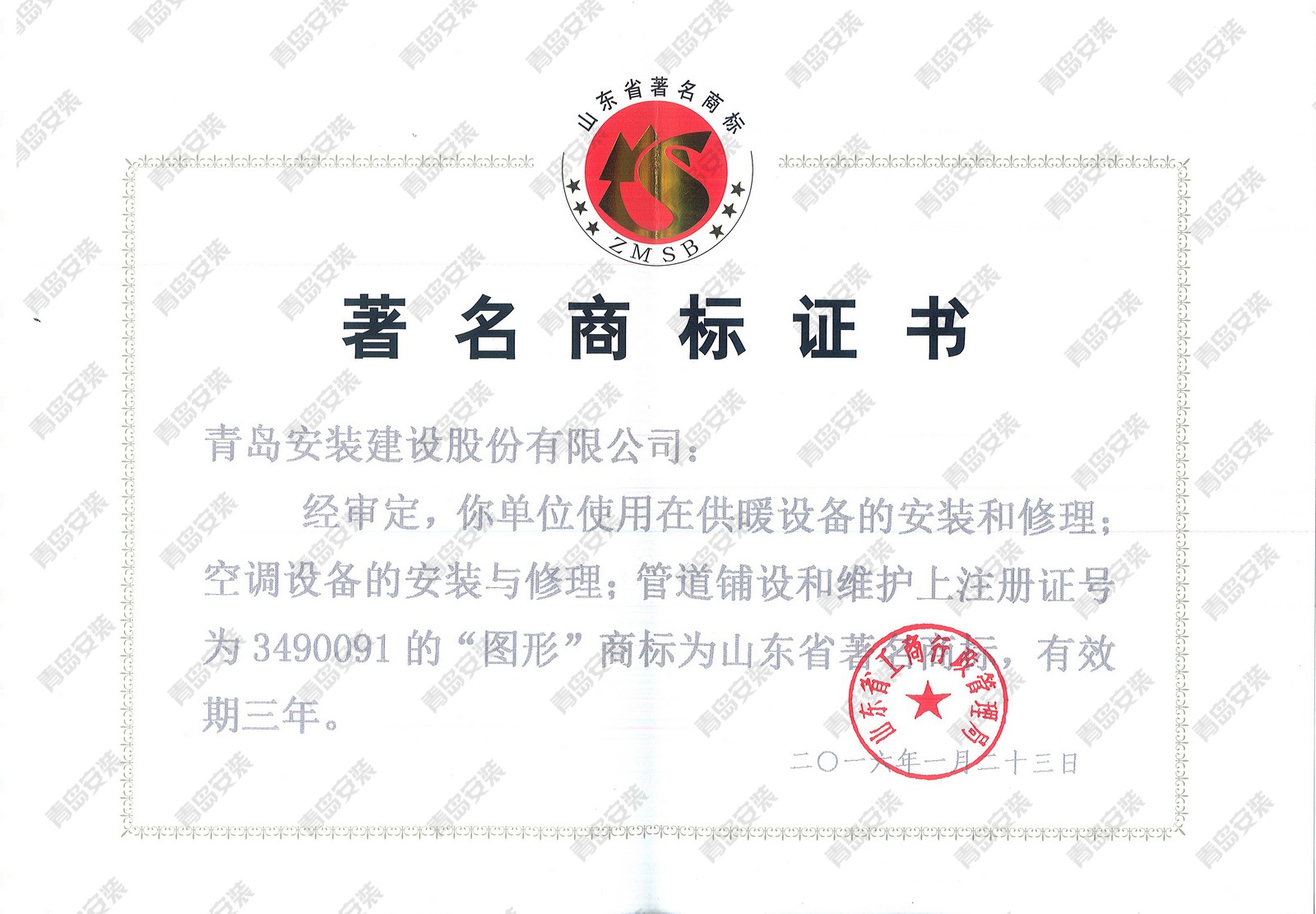 山東省著名商標(biāo)證書(shū)